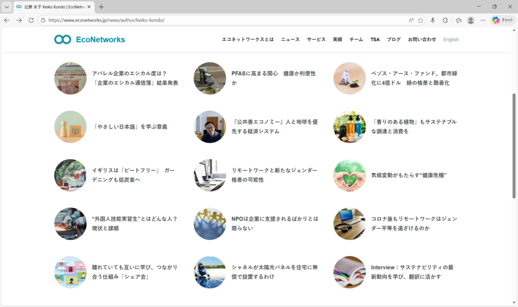 有限会社エコネットワークス(サステナビリティ領域の翻訳・コンサルティング会社)のWEBサイトにおける情報発信に継続して従事しました。